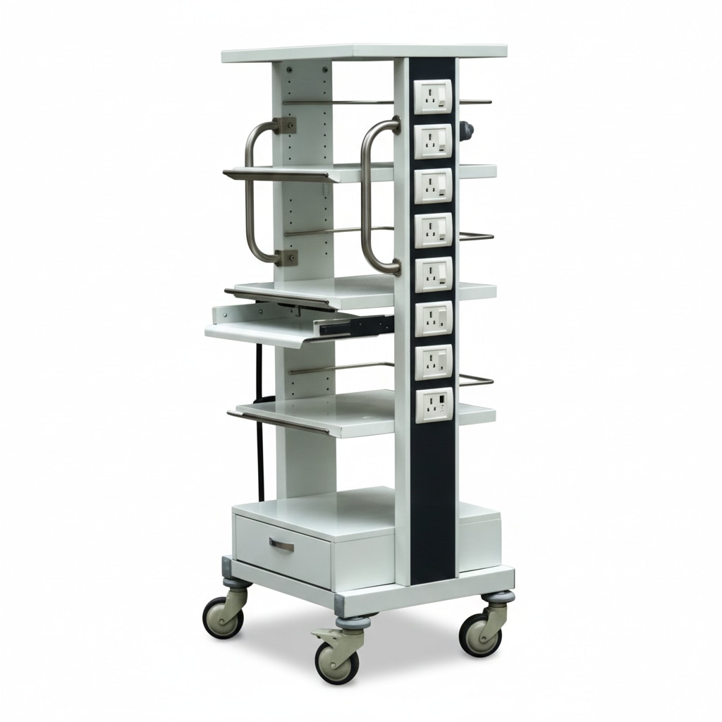 Equipment Trolley with Power Socket Panel – Multi Shelf Medical Monitor Cart on Wheels